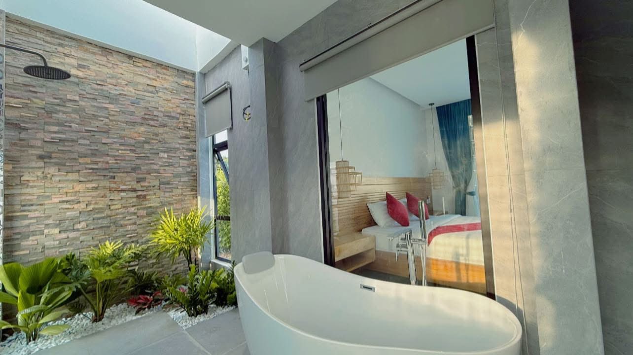 និងមានអាងហែលទឹក ផ្ទះលំហែបែប Private ស្ងប់ស្ងាត់ បន្ទប់ស្អាតផាកសុខភាព សម្រាប់ដំណើរកម្សាន្តលក្ខណះ គ្រួសារ ឬមិត្តភ័ក្ភ គេងបាន ១២នាក់ ទៅ ១៦នាក់
